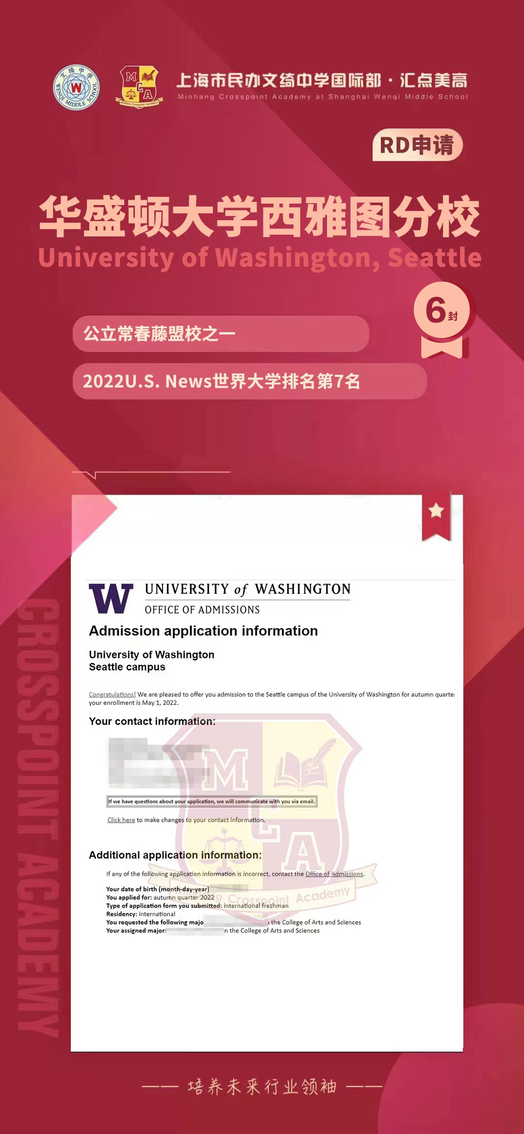 上海民办文绮中学6位同学获华盛顿大学西雅图分校录取