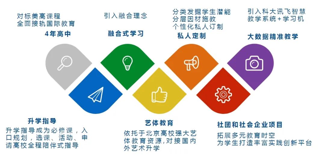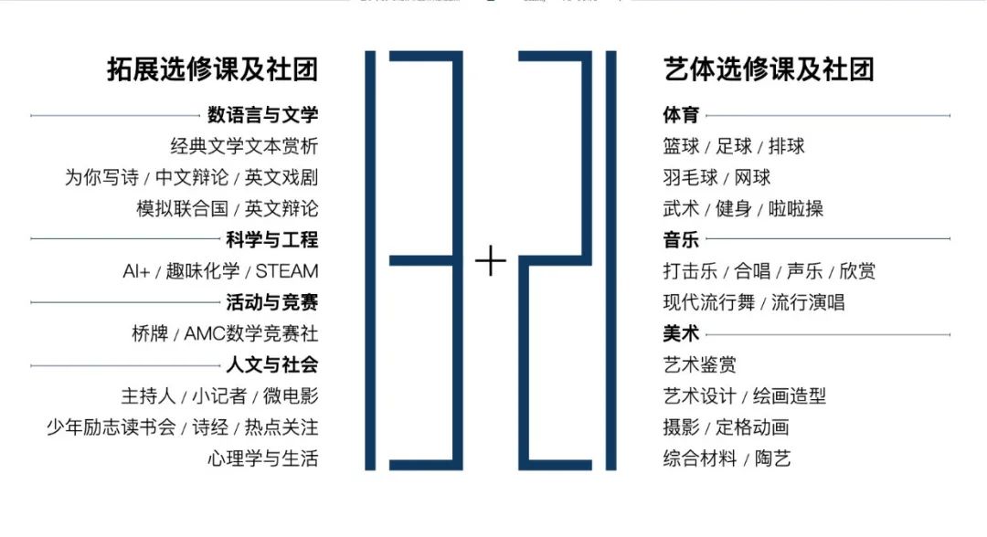 通过“基础必修+核心选修+拓展选修”课程体系,致力于把学生培养成既具有中华文化底蕴,又有全球视野、国际意识、文化自信和国际竞争力的社会精英,实现全球择校。