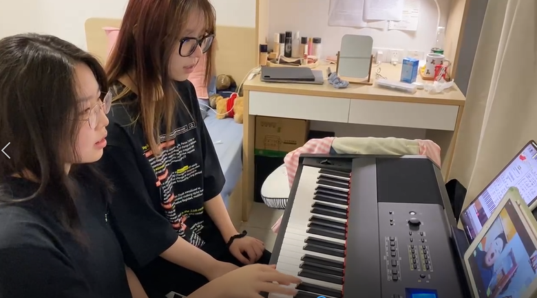 这不是突然回忆童年的思旧之声,也不是自娱自乐式的放松。在她们面前,琴架之上,放着一个iPad。而屏幕的另一端,是苏州工业园区博爱学校的孩子们,他们正通过网络直播,“一闪一闪……一一闪一闪……”慢慢地学唱这首歌。