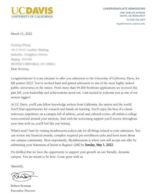 北京中加学校国际高中部学子再添重磅offer~伦敦国王学院、加利福尼亚大学戴维斯分校、宾夕法尼亚州立大学录取通知书!恭喜收获offer的同学!