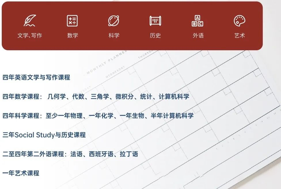 - 四年科学课程:至少一年物理、一年化学、一年生物、半年计算机科学