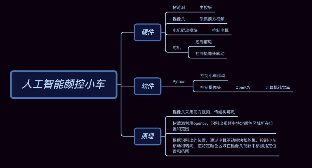 Mind Map听起来很复杂,简单概括便是让智能车捕捉一种颜色,并控制智能车永远盯着这个颜色,偏了就通过移动转向来调整,顾名思义的颜控小车。虽然概括很easy,可实现这个过程,并让机器实现学习可不容易。
