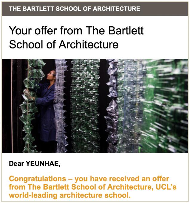 目前,天津惠灵顿学校还有几位12年级的学生正以Bartlett学院为目标努力着,YeunHae的成功让我们对此充满了乐观和信心。