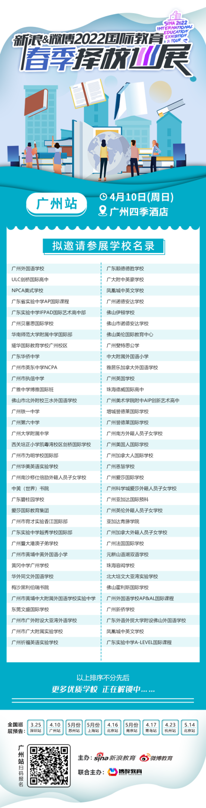 4月10日(周日),新浪&微博2022国际教育春季择校巡展将在广州举办。
