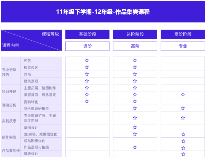 阶梯式课程体系,让Input与Output有机结合,让基础学习与专业提升科学衔接,打破传统死记硬背的学习方式,学生们通过运用想象力和创造力,将知识化为富有色彩的画面,通过丰富有趣的课堂活动激发学生使用英文表达自己的创意思维及批判性思维,不仅能提前让学生感受国外的课堂,还能帮助学生完成大学前的作品集、面试技巧。