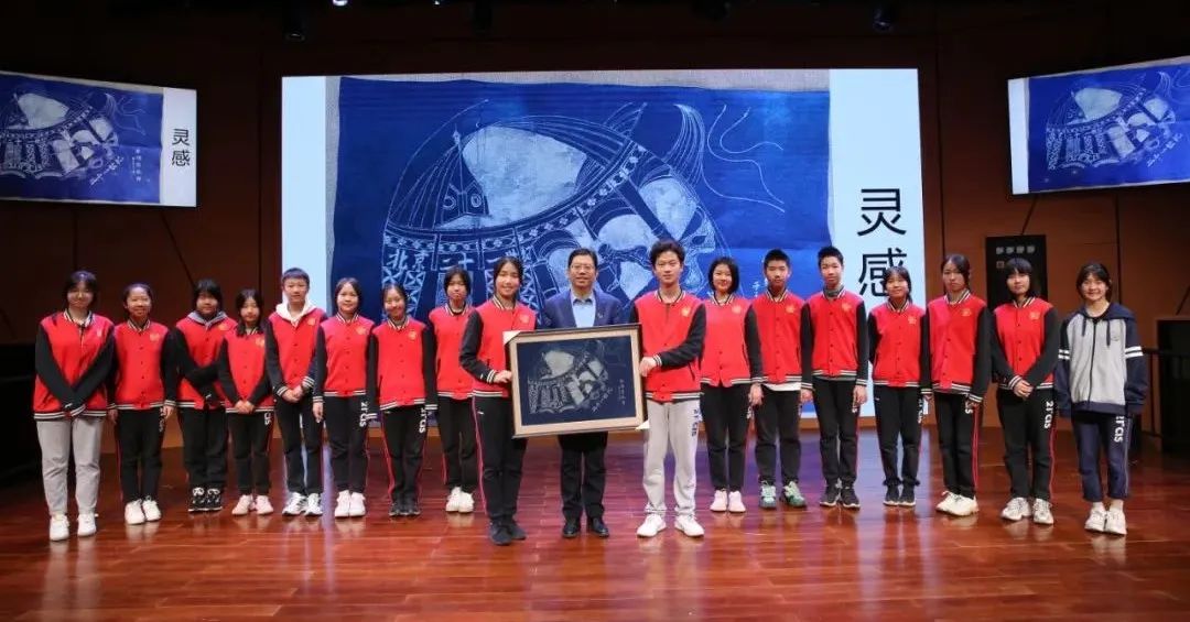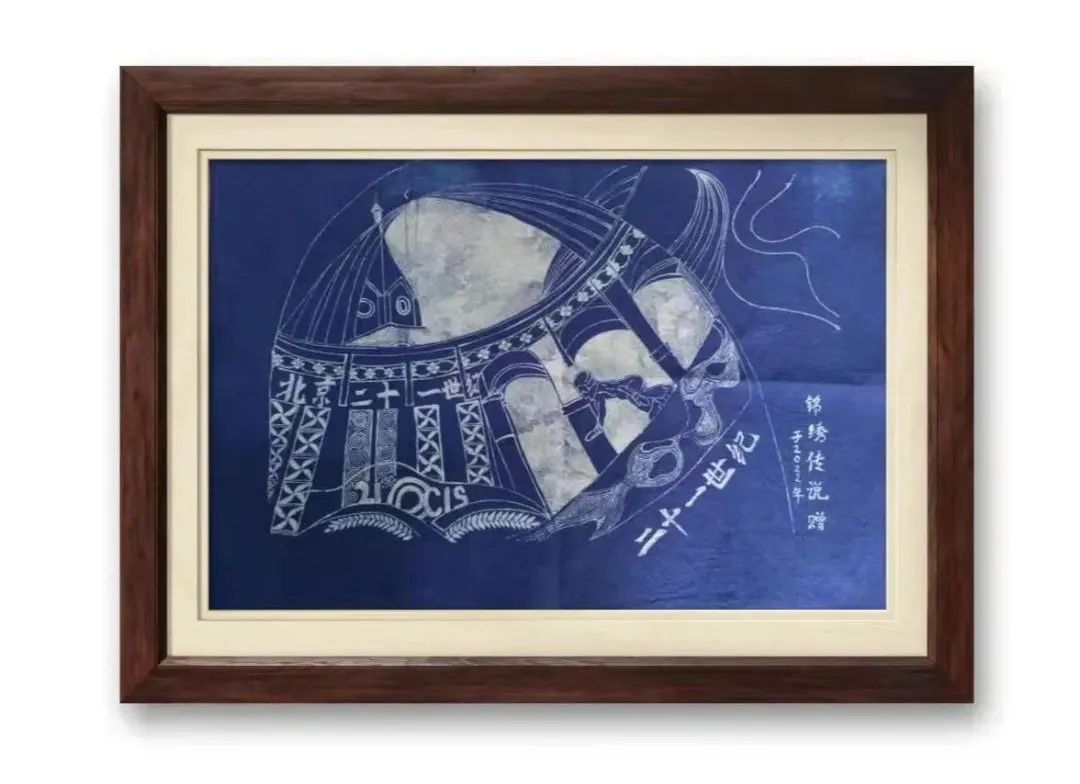 这封信来自二十一世纪锦绣社团初中分社。在赠送仪式上,社团的成员们向学校赠送这样一幅精美的蜡染定制作品: