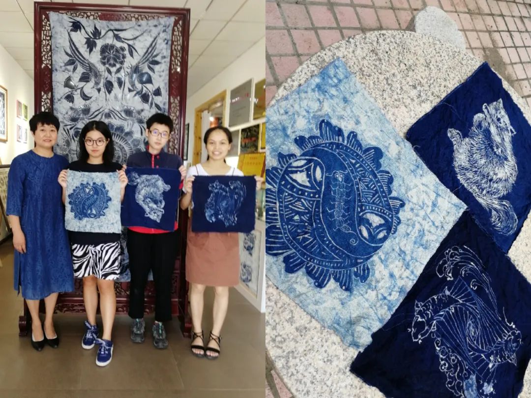曹雅涵学姐(左二)展示蜡染创新作品