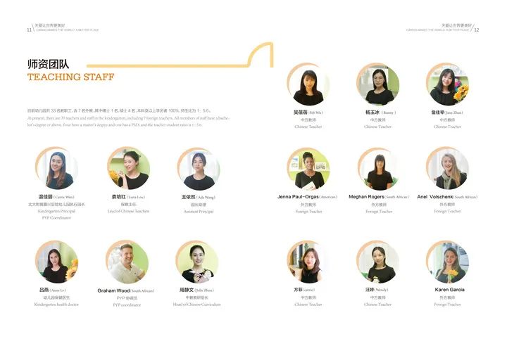全园33位教职工,含七名外教,每班配有专职的中方教师、外籍教师,小年龄阶段还配有双语助教。教师本科学历百分之百。教师的言行对幼儿起着潜移默化的示范和引领作用,教师爱生乐教,为人师表,学生才有可能成为终生学习的探究者。为了保障课程顺利实施,幼儿园有着严格的筛选机制,除了对中外教师专业上的考验以外,幼儿园还十分注重教师的个人品质是否符合IB培养者目标,经过了时间的淘洗,北大附属嘉兴实验幼儿园教师们保持了积极主动的学习态度和终身学习的学习目标,在自己的教育理想中前行。