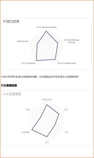 学校结合学生的学术、德育等方面的表现,形成个性化的评价轨道,再结合个性化的学习报告、升学规划方案和升学指导方案,形成综合性、动态化的成长档案。以此保证每个学生都能拥有最适合自身发展的教育教学模式。