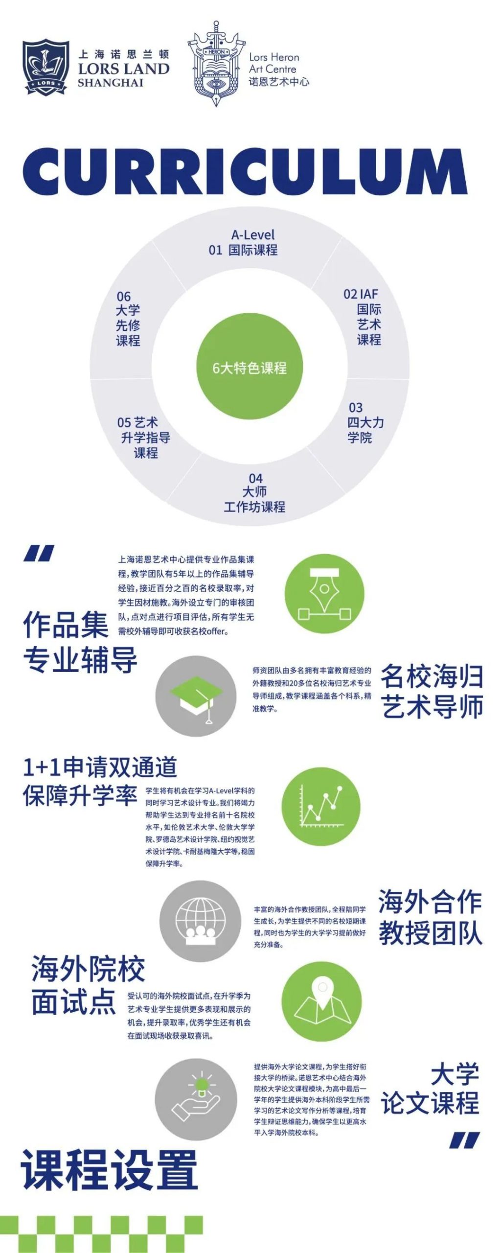 上海诺思兰顿(LORS Land , Shanghai)借当代艺术教育红利之风,与知名国际艺术教育中心合作打造了以艺术与设计为主要升学方向的诺恩艺术中心(LORS HERON),聚焦艺术教育,培育具有国际视野的艺术人才。