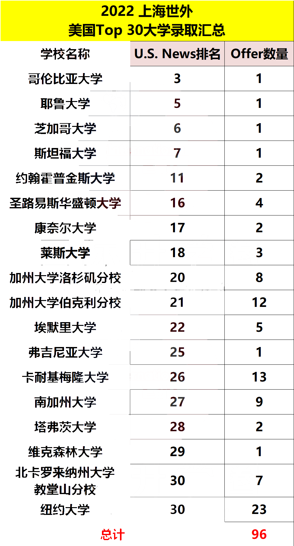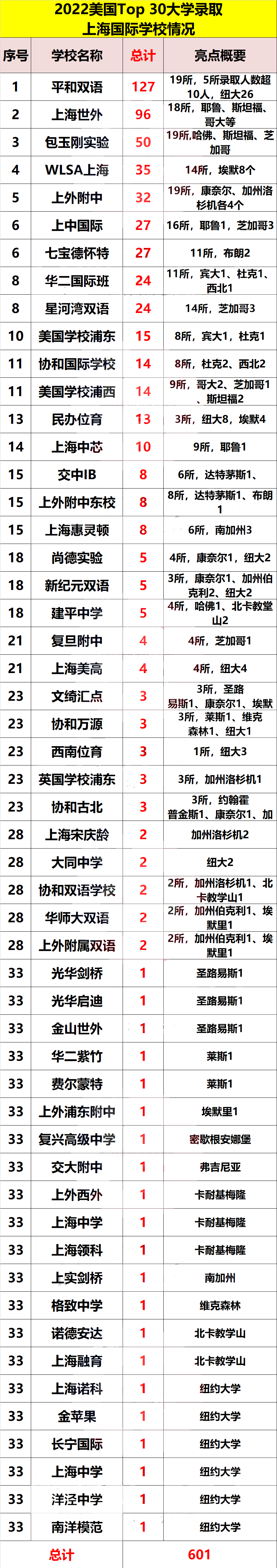 但即便如此,上海各所高效还是发挥了超强实力,合力斩获多达601枚美国Top 30大学的Offer!