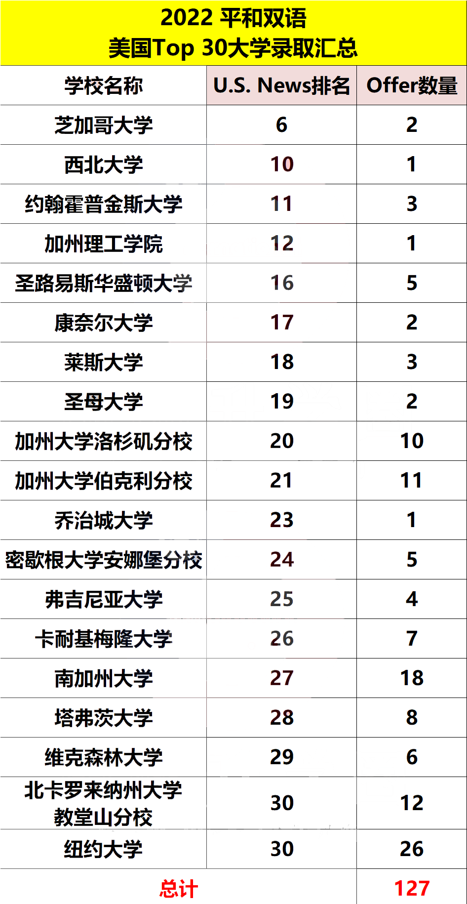 美国Top 10大学中,共拿到3枚Offer,包括2枚芝加哥大学以及1枚西北大学;