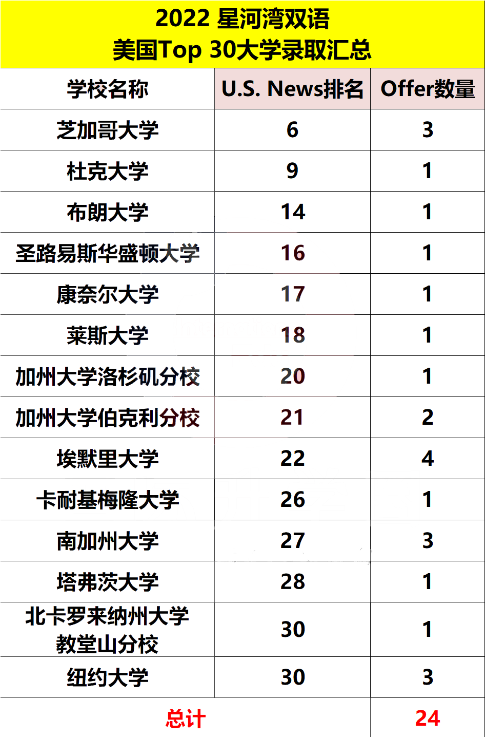加州大学伯克利分校和卡耐基梅隆大学今年对世外较为慷慨,分别下发了12枚、13枚Offer。