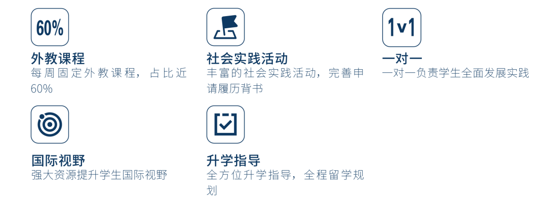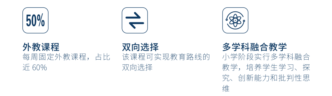 在国际小学部,课堂分为外教课堂及中文课堂,享受全天候的英文成长环境。课程以严谨的中国国家课程为核心,使用国际公认教学教法为辅助,分为校本课程及公共课程两个部分,强化提高学生的学习效率,收获均衡的全人教育,为打造复合型国际人才打下基础。