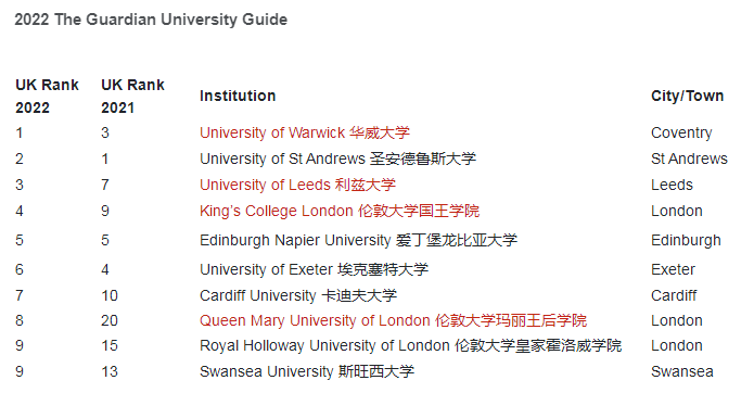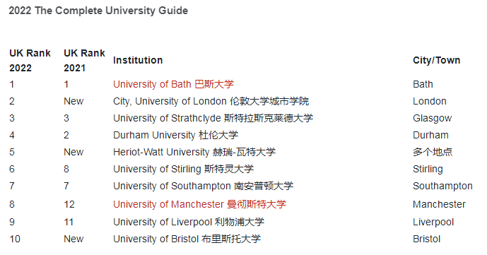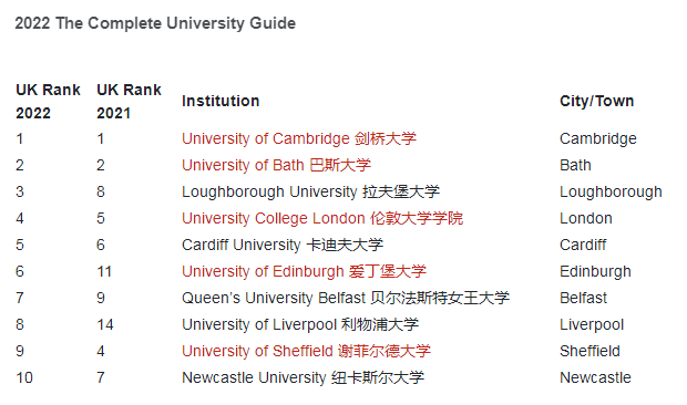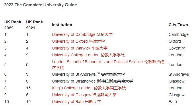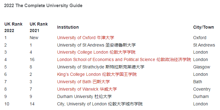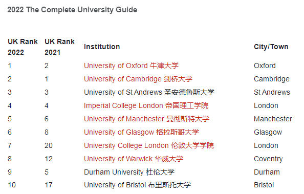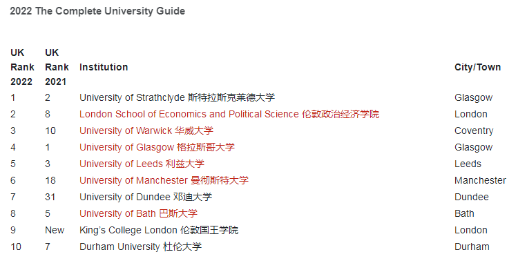 The Complete University Guide2022年英国大学商学院排名的前五都是谁⬇️