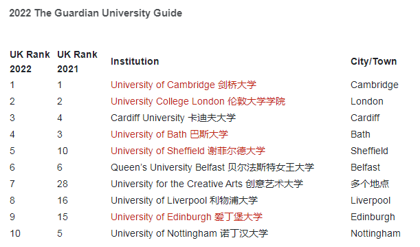 卫报2022年英国大学专业排名传媒学科的前五都是谁⬇️