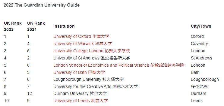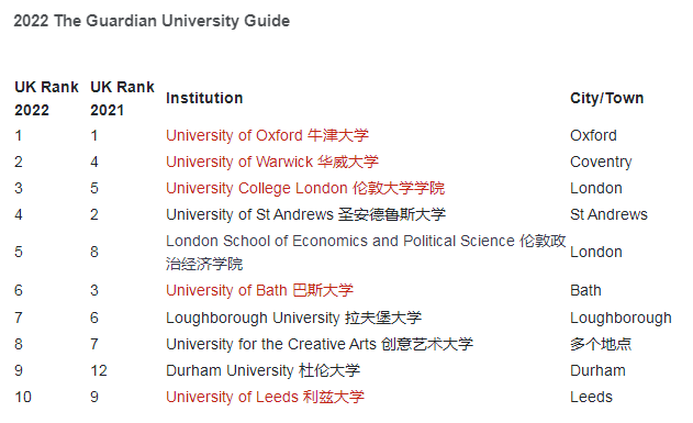 卫报2022年英国大学商学院排名的前五都是谁⬇️