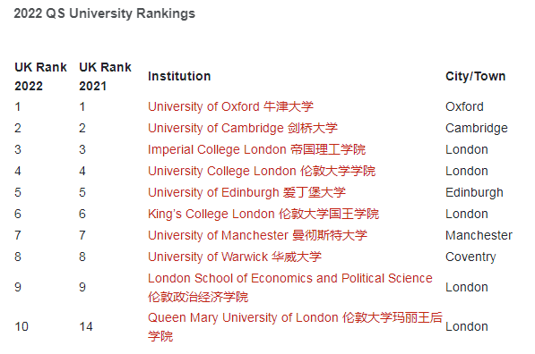 QS2022年英国大学专业排名计算机科学学科的前五都是谁⬇️