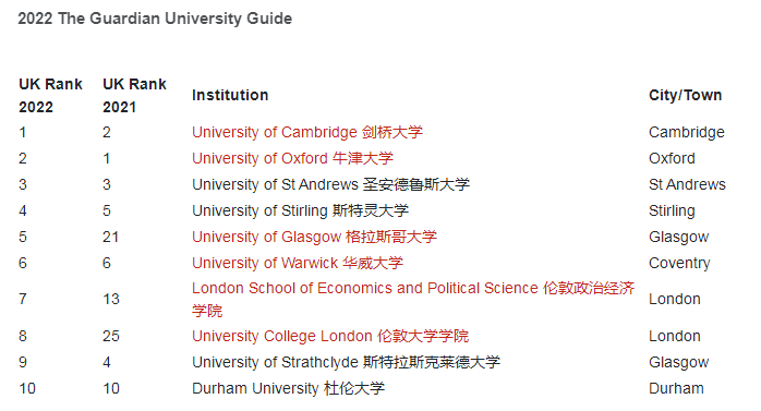 卫报2022年英国大学专业排名经济学科的前五都是谁⬇️