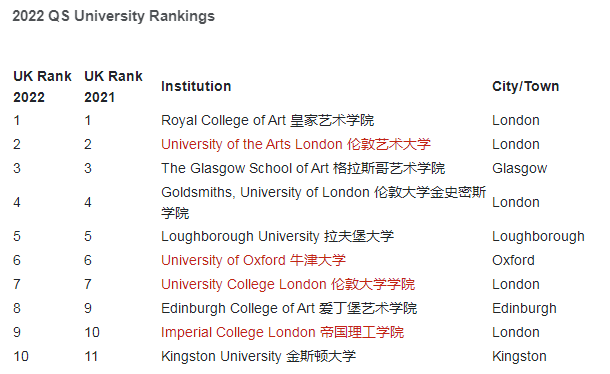 QS2022年英国大学专业排名艺术与设计学科的前五都是谁⬇️