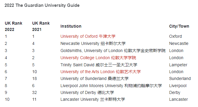 卫报2022年英国大学专业排名艺术与设计学科的前五都是谁⬇️