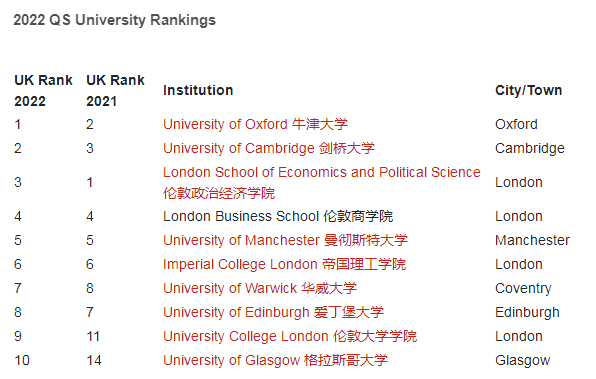 QS2022年英国大学专业排名经济学科的前五都是谁⬇️