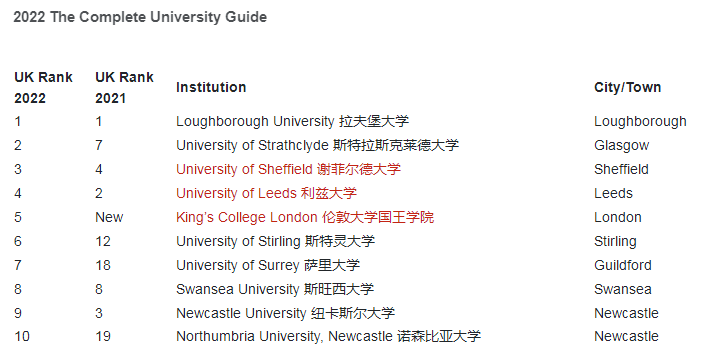 The Complete University Guide2022年英国大学专业排名计算机科学学科的前五都是谁⬇️