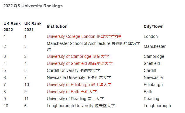 QS2022年英国大学专业排名建筑学科的前五都是谁⬇️