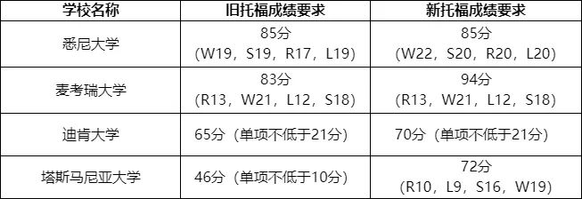 在澳新方面,也有部分院校有新调整,但调整都不大,比如熟知的悉尼大学和昆士兰大学,基本上都是小分有调整: