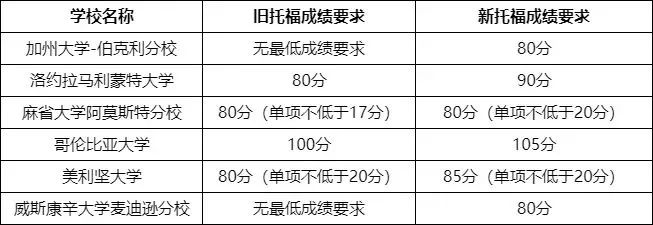 加州大学伯克利分校和威斯康星大学麦迪逊分校都由无最低托福成绩要求变更为托福成绩不低于80分;