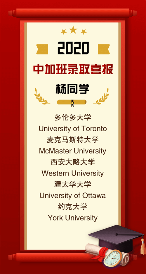 截止到目前为止,天津美国法拉古特中加班申请多伦多大学的毕业生们,全部都被录取!部分录取喜报如下: