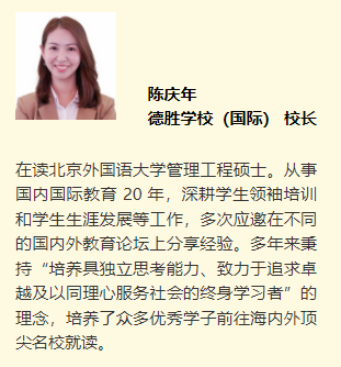 对于计划转学的学生,陈校长也提出了一些建议:“在转学之前,建议学生尽量提前拿到新课本进行预习,并且做好面临各种挑战的心理准备。提前设定好一个心理预期,跟自己比而不是跟他人比,从而减少焦虑;另外,还可以在线上尝试收听一些全英的学科课程,提前感受全英课程的学习,熟悉不同的学科术语。”