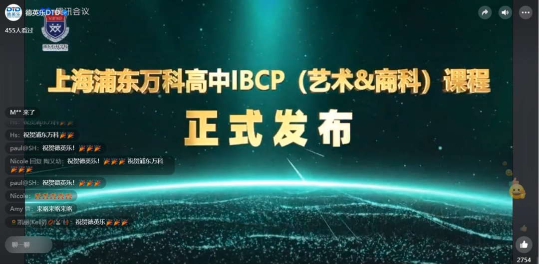 此次云端发布会的举办不仅代表着国内首家非外籍人员学校的IBCP项目顺利落地,还标志着国内唯一一所DP、CP、MYP、PYP四个IBO项目全体系认证的非外籍人员学校即将诞生,同时也象征着上海浦东万科高中IBCP(艺术和商科)课程这艘“大船”将正式亮相,在国际化教育的领海里扬帆起航,带领着国际化教育新通路的探索者乘风破浪!