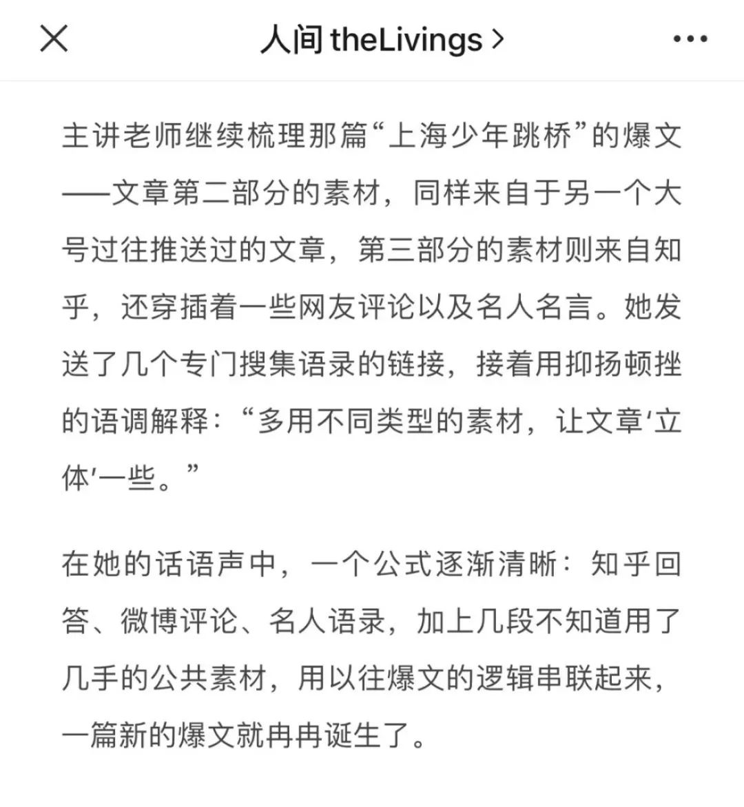 ■泛教育是门槛最低的热文领域,从业人员不需要了解专业知识,不需要进行采访,有的是雷同的逻辑,东拼西凑的故事,煽情的观点,一切为了吸粉、成交。