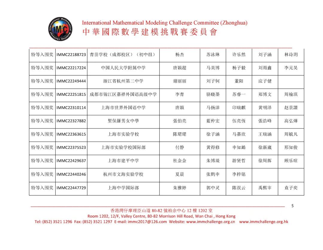 2022国际数学建模挑战赛IMMC中华赛获奖名单
