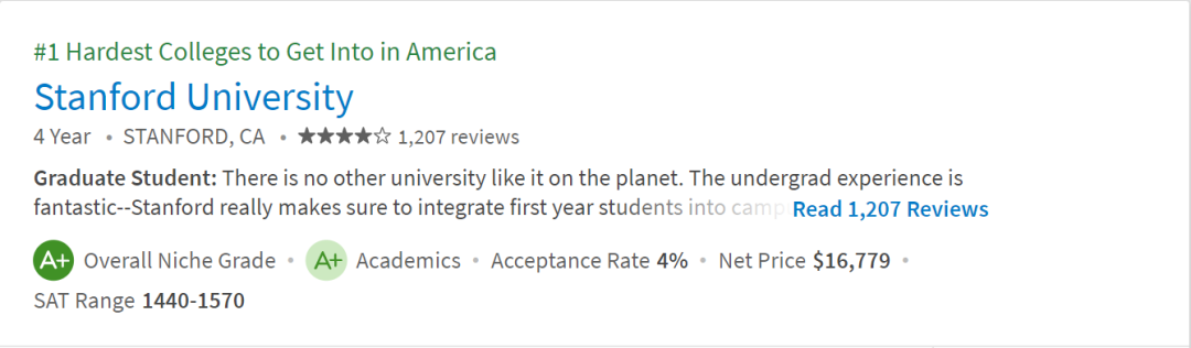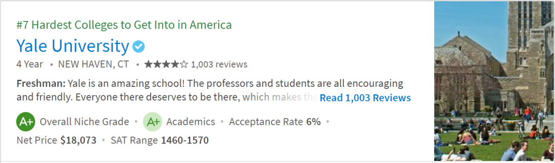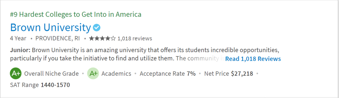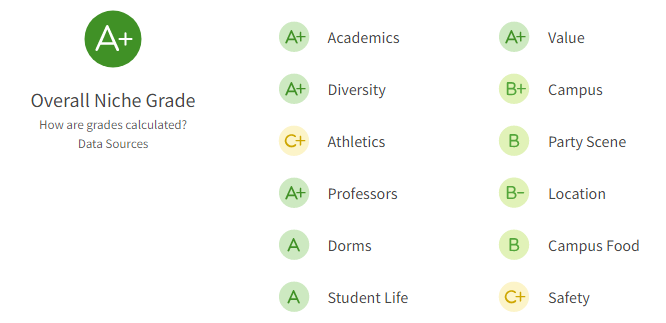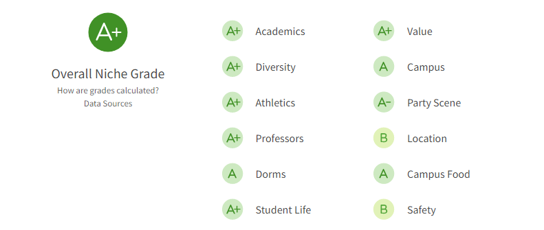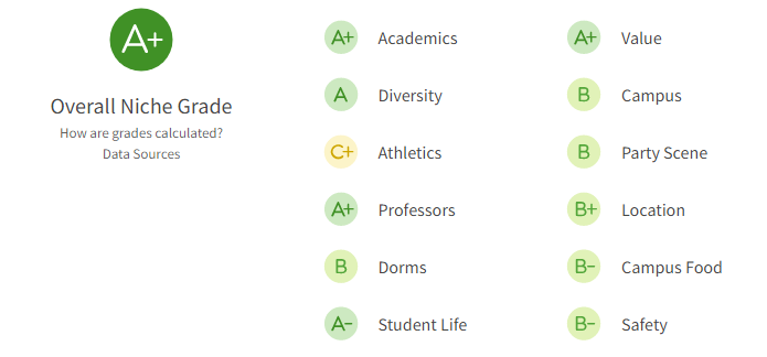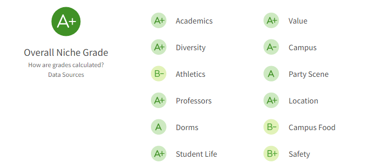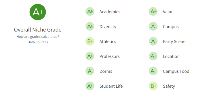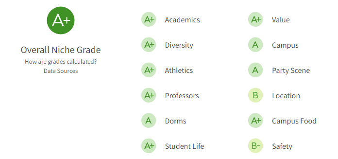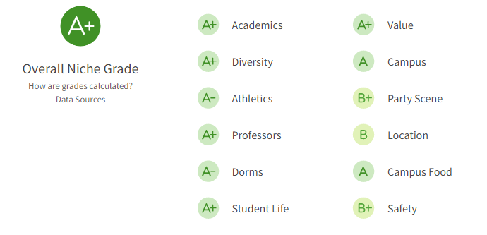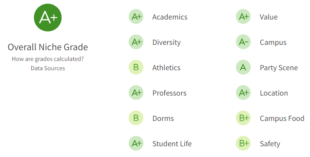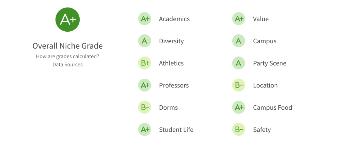 如果一所大学能够在Niche排名中有不错的表现,那么也就意味着这所大学在美国大学生中拥有相当不错的口碑。