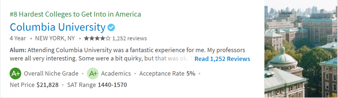 Niche排名不仅结合了学术、招生、财务和学生生活等数十种公共数据,更重要的是结合了一众学生家长的意见做参考,可以称得上是一份大学满意度排行榜。