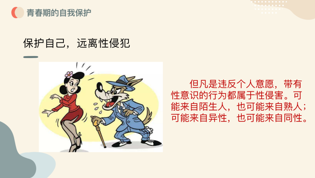 到了青春期,我们的自我独立意识增强,而且情绪易变。我们一定要控制好自己的情绪,如果有伤心难过的事,要跟其他人倾诉,不能一个人自己憋着。我就是这样,以前遇到困难总不跟别人讲,久而久之自己就开始变得不自信,不爱跟人沟通了。王老师还教我们怎样保护自己的隐私部位,不能让别人乱摸乱看,如果觉得被侵犯,要寻求家长、老师、朋友的帮助,千万不能觉得不好意思,或者被威胁了就不说,不然,受伤害的就只能是自己了。