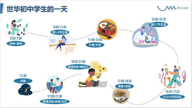 很多人说,世华初中是顶尖国际高中名校的摇篮,这话不无道理。世华初中对学生确实“深谋远虑”。面对未知的未来,需要在各方面培养太多能力,才有实打实的竞争力。世华初中对孩子的“计之深远”在于:学生不仅要会学习,更能合理安排时间,还要有扎实的学术基础应对国际高中的基本要求……