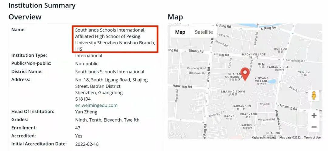 图为Cognia官网资料:北大附中深圳南山分校国际部为认证学校