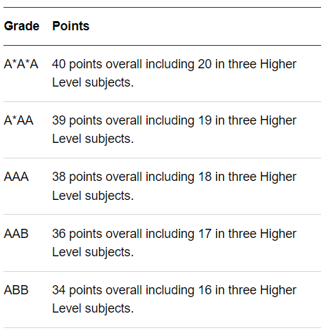 比如一个专业的入学要求是A-levelAAB,化学A,那么IB申请的你需要: