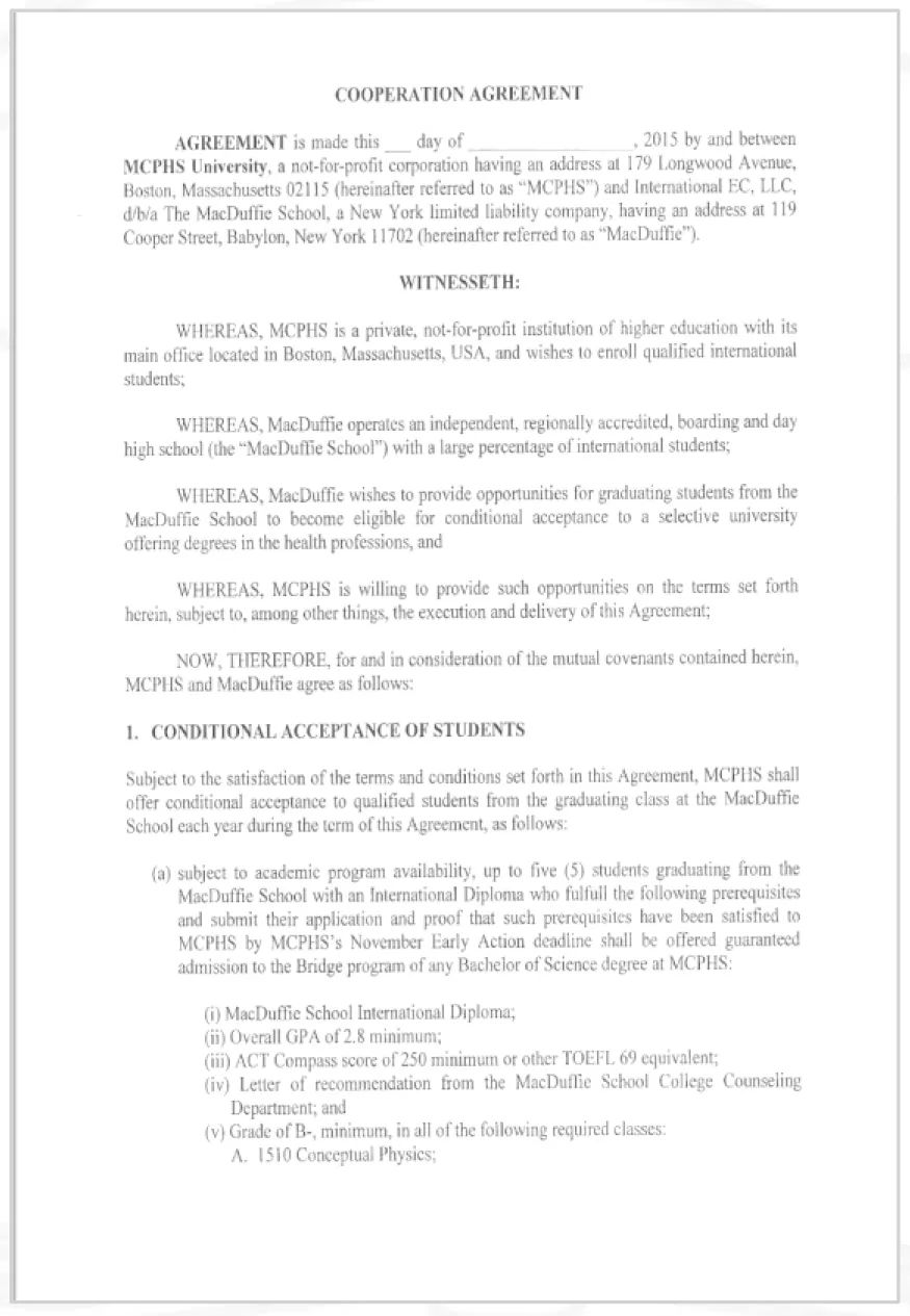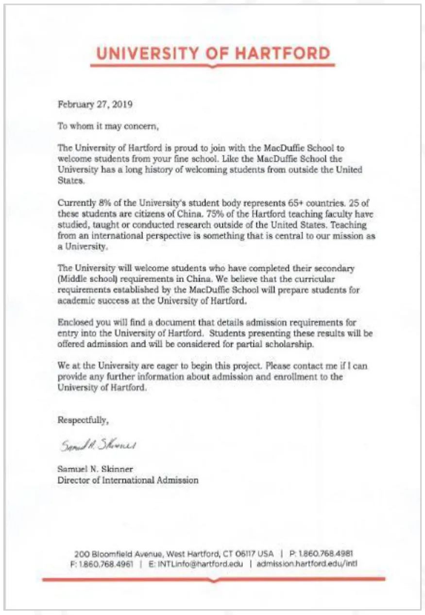 麻省药科与健康科学大学、哈特福德大学保录协议