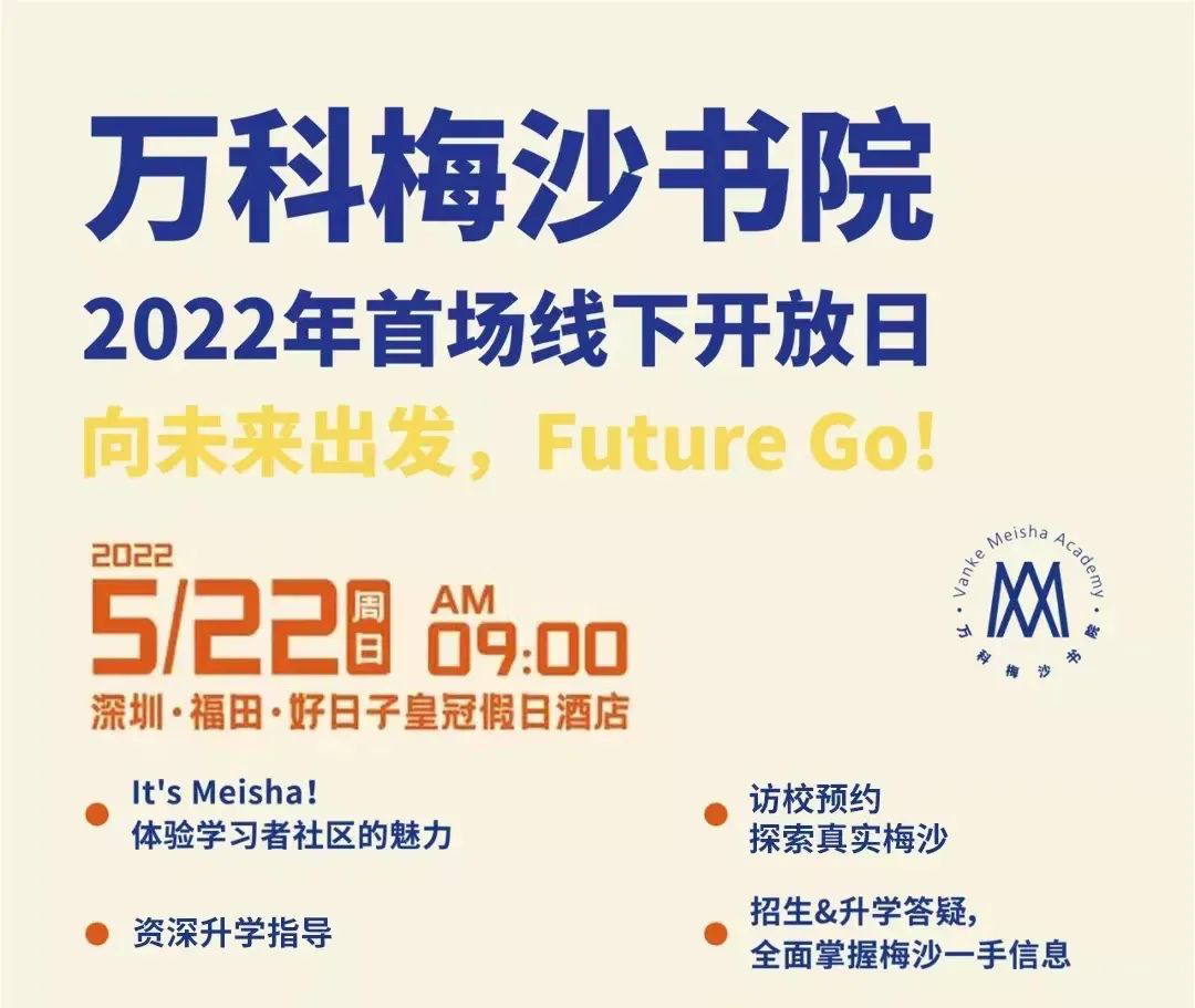 在今年的申请季中,背靠深中、万科投资的“黑马”国际牛校——万科梅沙书院再次以强劲的实力,引发广泛关注。2022年万科梅沙书院首场线下开放日报名开启!