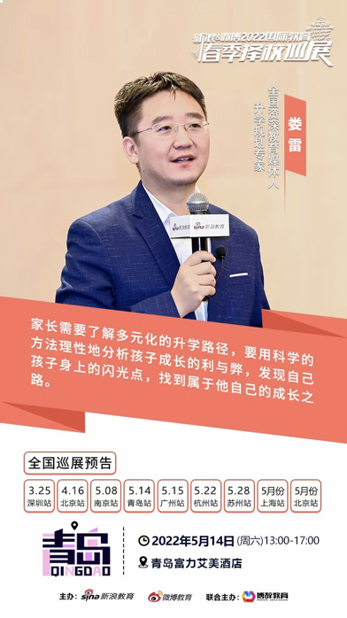 5月14日,由新浪教育、微博教育、博辞教育联合主办的“新浪&微博2022国际教育春季择校巡展”在青岛富力艾美酒店成功举办,为青岛择校家庭搭建与学校沟通的桥梁,破解青岛升学季下的家长选校焦虑。
