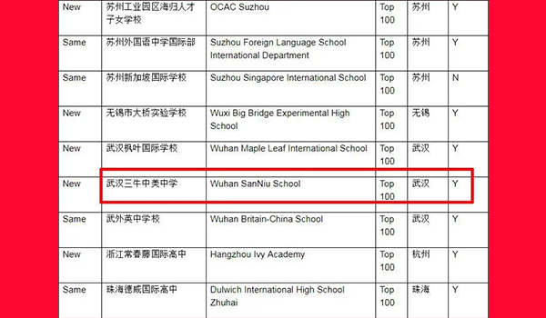 胡润百学发布《2020胡润百学·中国国际学校百强》,武汉三牛中美中学新晋跻身全国百强学校,成为武汉市唯三入选的国际学校,此次入围的百强学校中,88%来自北上广深和江浙,入选榜单的三所武汉国际学校中,建校时间低于五年的学校,仅这一所。