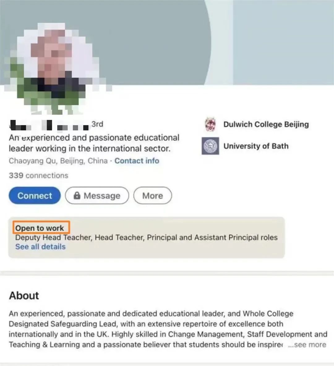 小编搜索了一下资料,这位“前”校长是从曼彻斯特城市大学获得小学教育本科学位,正在英国巴斯大学修读国际教育硕士学位。