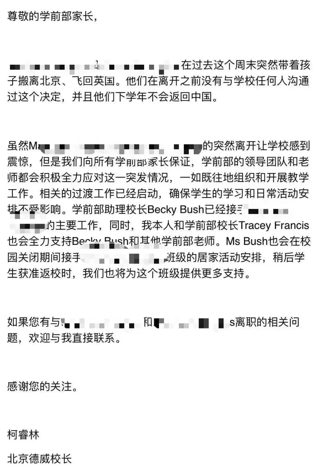 北京德威外籍校长连夜逃离!外教流失家长态度如何?