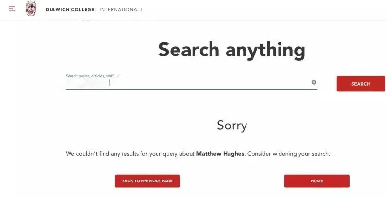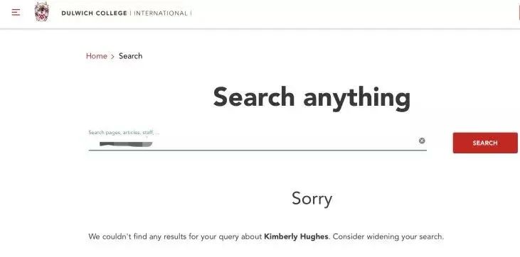 在北京德威学校的官网,小编检索他的的信息,也是显示“无查询结果”。