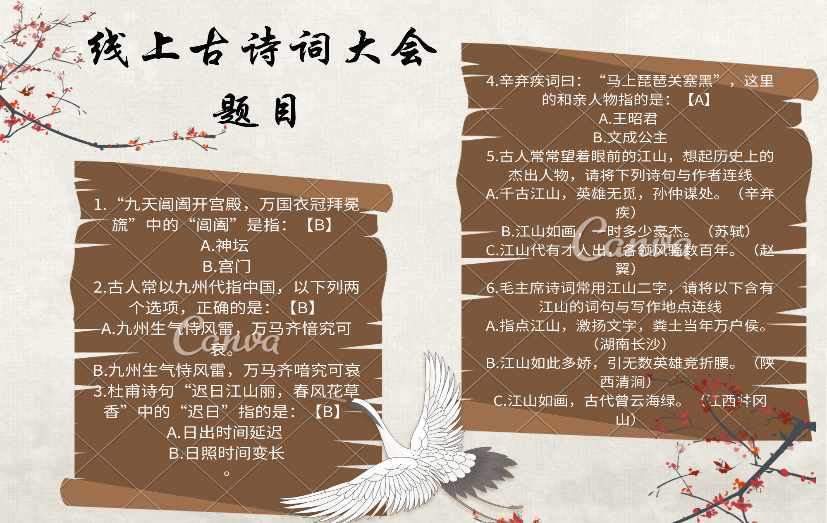 线上古诗词大会部分题目