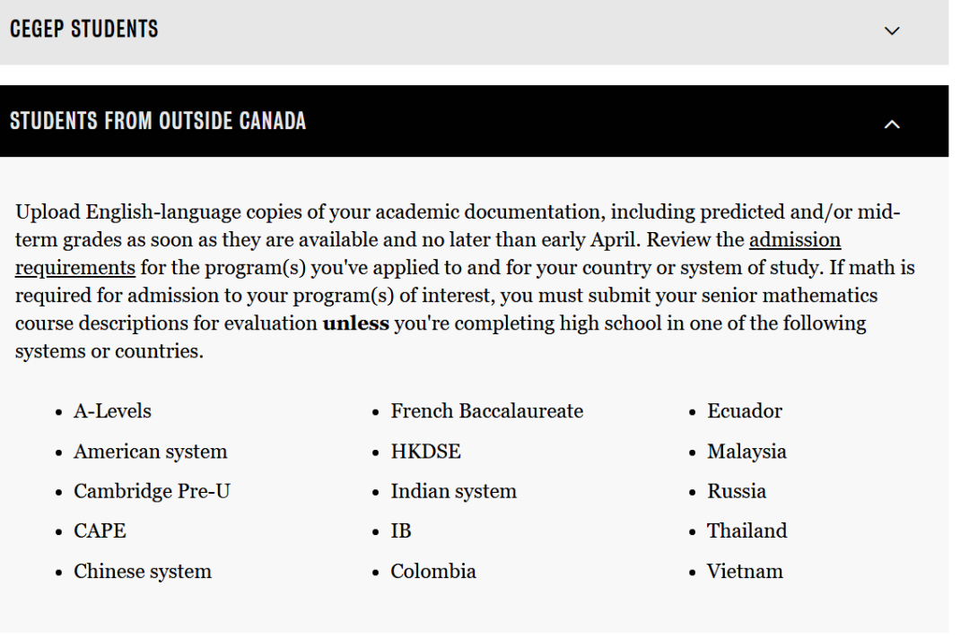 步骤四:在学术要求中会列举所有认可的课程体系,查看是否有US Curriculum/ American System/AP